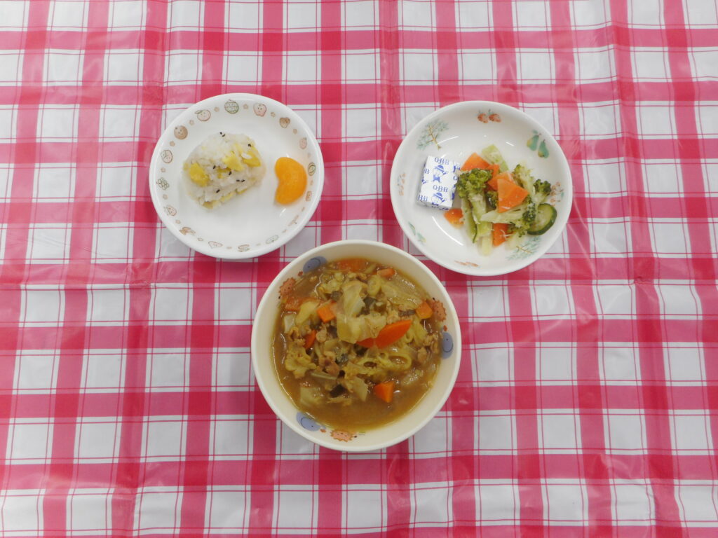 【給食】 カレーラーメン チキンサラダ チーズ 【おやつ ...