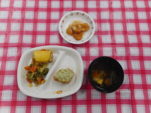 【給食】 くまさんライス おひたし コーンスープ みかん 【おやつ】 おたのしみおや ...